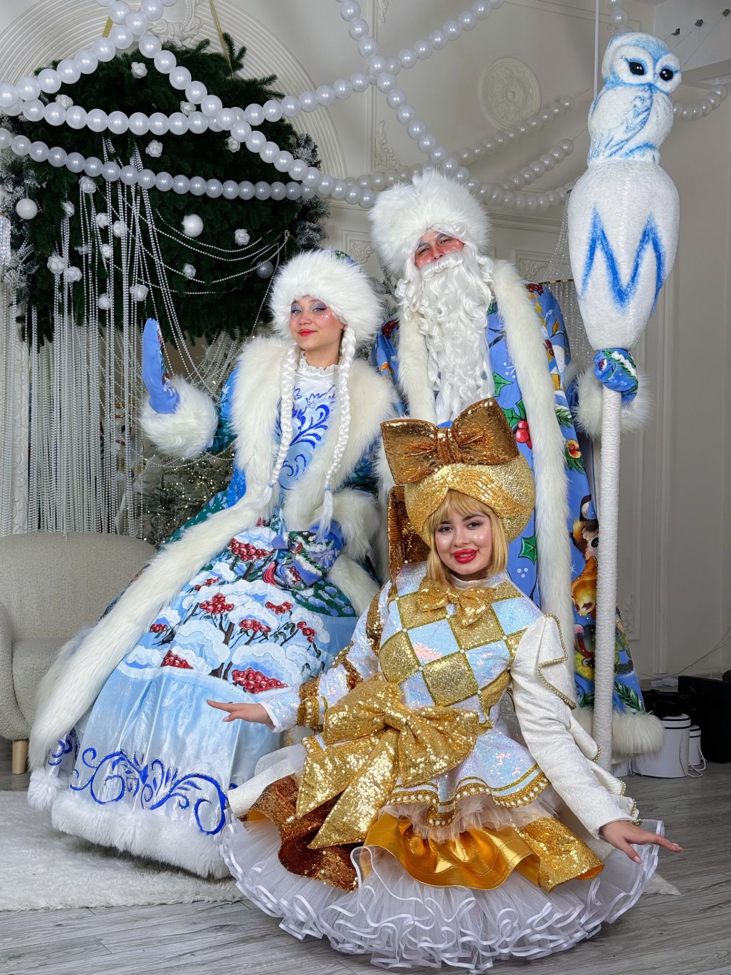 Команда «Дед Мороз, Снегурочка и Ёлочная игрушка Gold» — классика Нового года с блеском и вау-эффектом: хороводы, интерактивы, раздача подарков и сияющая фотозона. Идеально для семейных утренников, ТРЦ и корпоративов.